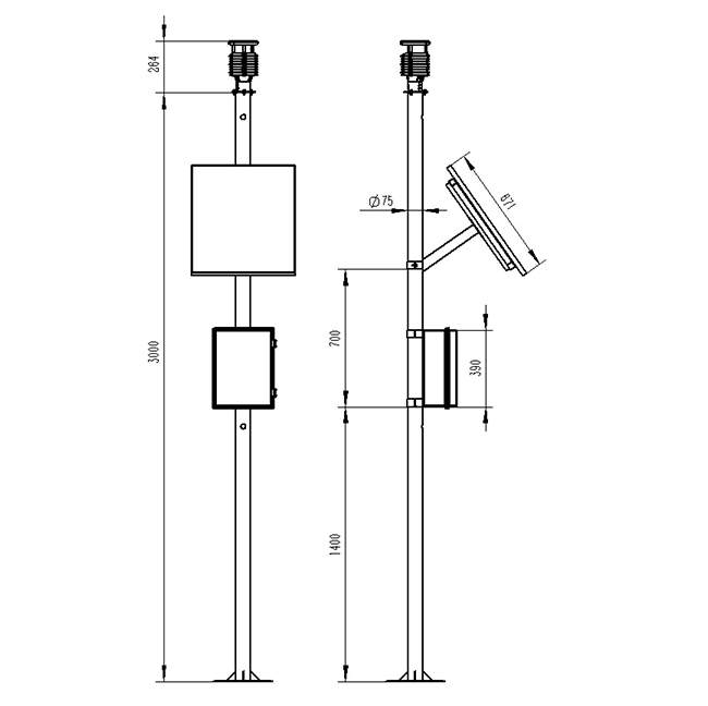 5、兩米碳鋼支架,頂部無(wú)需法蘭盤(pán)可直接套接傳感器